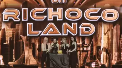 Mereka tampak bersemangat saat bermain game tebak kata dalam jingle Richoco. Lalu juga ada game mengurutkan foto member yang dimenangkan oleh Winter.