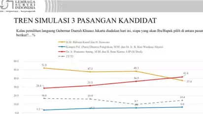 Sementara Hasil jajak pendapat LSI memperlihatkan Pramono Agung-Rano Karno unggul pada Pilkada Jakarta 2024 dengan elektabilitas sebesar 41,6 persen. Sementara, paslon nomor urut 1 Ridwan Kamil-Suswono mencatatkan tingkat keterpilihan sebesar 37,4 persen.Â