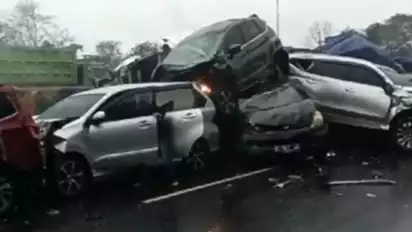 Kecelakaan terjadi begitu parah melibatkan banyak sekali kendaraan.