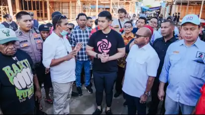 Kaesang Blusukan Bareng Septinus Lobat di Pasar Sentral Remu Kota Sorong yang Terbakar