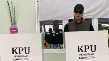 Setelah itu El Rumi putra Maia Estianty itu mengambil surat suara dan mencoblosnya di balik bilik suara.