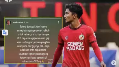 "Tolong dong pak kami hanya orang biasa yang mencari nafkah untuk keluarga kita, tapi kenapa CEO bapak sengaja menahan gaji kami. Sedangkan pemain yang lair udah pada cair gajinya," tulis Ramadhan Madon dalam Insta Story-nya.