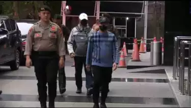Dengan dikawal anggota kepolisian dan tim penyidik, tangan Risnandar tampak tak diborgol.