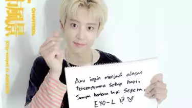 "Aku ingin menjadi alasan tersenyummu setiap hari. Sampai bertmu lagi segera EXO-L," tulisnya lengkap dengan gambar hati.