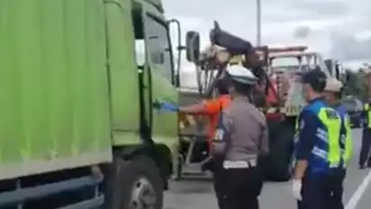 Kemudian, polisi bersama dengan petugas tol lalu lintas menghampiri untuk mengecek kondisi truk. (rpi/dpi)