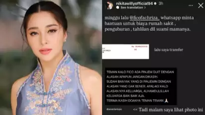 "Minggu lalu @ficofachriza_ WhatsApp minta bantuan untuk biaya rumah sakit, penguburan, tahlilan dll suami mamanya," tulis Nikita Willy di akun Instagram mliknya, Sabtu (28/12/2024).