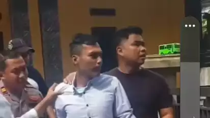 Terlihat dalam video pria yang diamankan menggunakan kemeja lengan panjang berwarna biru.