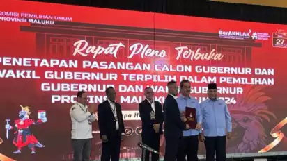 Jakarta, tvOnenews.com - Komisi Pemilihan Umum (KPU) Provinsi Maluku resmi menetapkan dan mengesahkan pasangan Hendrik Lewerissa-Abdullah Vanath sebagai Gubernur-Wakil Gubernur Maluku terpilih periode 2025-2030.