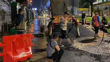 Perbaikan dilakukan pada Rabu (8/1) malam dengan melakukan pengaspalan kembali pada bagian permukaan jalan yang rusak.(ant/dpi)