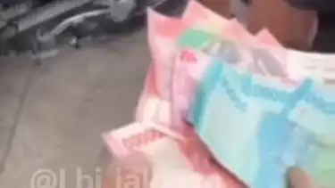 Kemudian tampak perekam video tengah memegang sejumlah uang senilai Rp 50.000 dan Rp 100.000 milik anak tersebut. Selanjutnya uang tersebut juga sempat diterawang oleh warga.