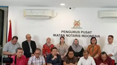 Jakarta, tvOnenews.com - Pengurus Pusat Ikatan Notaris Indonesia Versi Kongres Cilegon didampingi oleh kuasa hukumnya Pablo Benua, B.M.P., S.H merespons soal keputusan sepihak dari Direktorat Jenderal Administrasi Hukum Umum Kementerian Hukum Republik Indonesia.