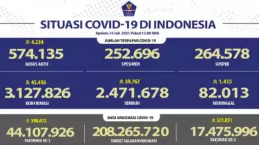 Adapun data keterisian tempat tidur di RS rujukan COVID-19 di DKI pada Sabtu (24/7) pukul 20.15 WIB adalah: