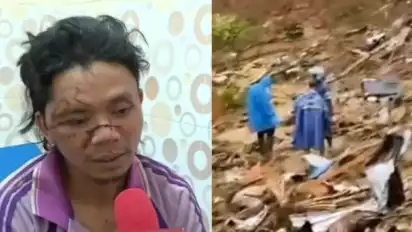 Ketika ia terbangun, dirinya sudah tertutup lumpur dan berada sekitar 200 meter dari lokasi awal.
