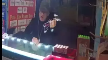 Setelahnya pria tersebut kembali mengamuk dan melemparkan bangku hingga barang-barang di atas meja konter.
