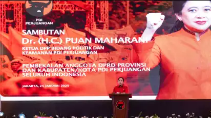 Jakarta, tvOnenews.com - Ketua DPP PDI Perjuangan sekaligus Ketua DPR RI, Puan Maharani, memberikan pembekalan kepada ribuan anggota DPRD PDIP dalam acara Bimbingan Teknis (Bimtek) di Grand Ballroom Theatre JIExpo Kemayoran, Jakarta Pusat, Sabtu (25/1/2025).