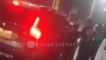 Kemudian terlihat para warga geram dengan pengemudi yang tak kunjung turun dari dalam mobil. Â