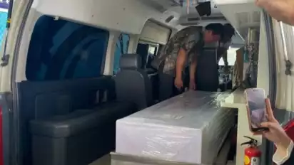Jenazah Basri langsung dimasukkan ke ambulans untuk dibawa ke Pulau Rupat, Bengkalis.