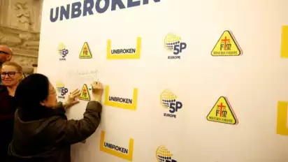 Roman Oleksiv yang masih berusia 9 tahun itu sebagai salah satu penyintas perang hadir di acara tersebut.