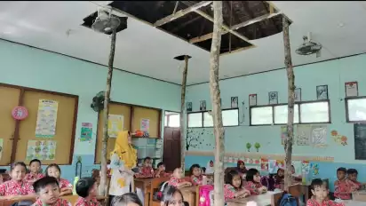 "Sudah tiga tahun lalu dilakukan pengajuan perbaikan dan belum ada respon. Kemungkinan terjadi kesalahan data dapodik kita sehingga tidak ada pembenahan. Kondisi kayu penyangga atap gedung sudah lapuk dimakan usia. Bahkan plafon pada ambrol karena struktur kayu penyangga atap gedung udah lapuk. Udah tak layak sebagai tempat pembelajaran," jelas Sudarwati.