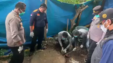 Polisi bongkar septic di rumah tersangka kasus pembunuh karyawan koperasi di Cibarusah, Kabupaten Bekasi, Rabu (5/2/2025). (Foto: tvOnenews.com/M Supyan Limpong)