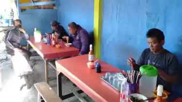 Salah satu warung yang sudah melayani pelanggan makan di tempat adalah gerobak mie ayam yang terletak di Jalan Swadaya PLN, Klender, Jakarta Timur.