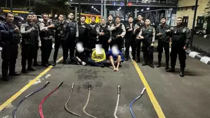 Jakarta, tvOnenews.com - Tiga remaja diduga hendak tawuran diamankan tim Patroli Perintis Presisi Sat Samapta Polres Metro Jakarta Pusat di Jalan Kalibaru Barat, Bungur, Kecamatan Senen, Jakarta Pusat pada Jumat (14/2/2025).