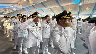 Jakarta, tvOnenews.com - Presiden Prabowo Subianto resmi melantik 961 kepala daerah secara serentak di Istana Kepresidenan, Jakarta Pusat, Kamis (20/2/2025).