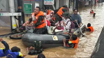 Jakarta, tvOnenews.com - Petugas gabungan yang terdiri dari TNI, Polri dan BPBD DKI Jakarta melakukan evakuasi warga yang terjebak banjir di wilayah Kelurahan Cililitan, Kramat Jati, Jakarta Timur.