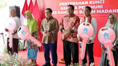 Jakarta, tvOnenews.com - Warga eks Kampung Bayam Madani akhirnya resmi menempati Kampung Susun Bayam setelah menerima kunci hunian secara simbolis dari Gubernur DKI Jakarta, Pramono Anung, dan Wakil Gubernur, Rano Karno.