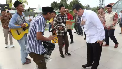 Serang, tvOnenews.com -Â Wali Kota Serang Budi Rustandi membuka gate parkir Stadion Maulana Yusuf (MY), Ciceri, Kota Serang, Kamis (6/3/2025).