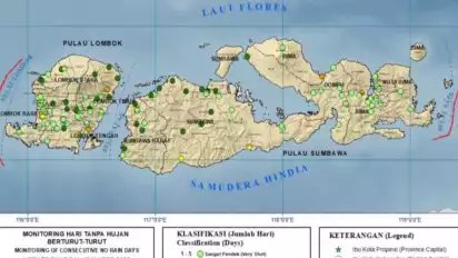 Selain itu terdapat peluang curah hujan 150 milimeter/dasarian terjadi di Lombok bagian utara dan wilayah Tambora. "Dengan peluang 60-80 persen," katanya mengutip Antara pada Swlasa (11/3/2025).