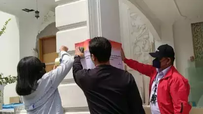 Deli Serdang, Sumut - Bareskrim Polri menyegel rumah Indra Kenz yang ingin diberikan kepada orangtuanya seharga Rp 5 miliar dan rumah mewah miliknya yang dibeli seharga Rp 30 Miliar di Kompleks Cemara Asri, Kecamatan Percut Sei Tuan, Kabupaten Deliserdang, Rabu (9/3/2022).