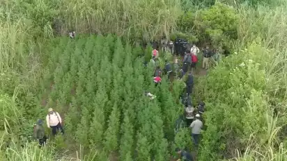 Pantauan tvOnenews.com pada Jumat (20/9/2024), saat polisi dan warga menyisir ladang ganja di 16 lokasi berbeda luasannya mulai dari 5x10 meter sampai 10x20 meter.