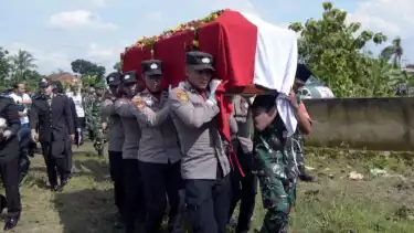 Upacara pemakaman secara kedinasan pada Selasa (18/3) diawali dengan tembakan salvo yang diarahkan ke udara. Upacara pemakaman dipimpin oleh Wakapolda Lampung Brigjen Pol. Ahmad Ramadhan.