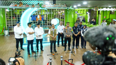 Jakarta, tvOnenews.com - Menteri Perhubungan (Menhub) Dudy Purwagandhi melakukan peninjauan di Stasiun Gambir, Jakarta Pusat, pada Sabtu (29/3/2025) jelang hari raya Idul Fitri 1446 Hijriyah.