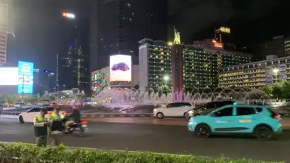 Jakarta, tvonenews.com - Kepolisian menempatkan empat peleton personel untuk menjaga kawasan Bundaran Hotel Indonesia (HI) Jakarta Pusat pada malam takbiran Idul Fitri 1446 Hijriah.
