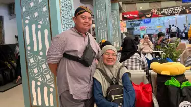 Salah satu calon penumpang yang akan melakukan perjalanan adalah warga asal Tangerang, Slamet Riyadi (56) bersama istrinya.