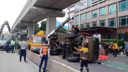 Direktorat Lalu Lintas Polda Metro Jaya mengungkap, kecelakaan truk tersebut terjadi diduga akibat sopir kurang konsentrasi.
