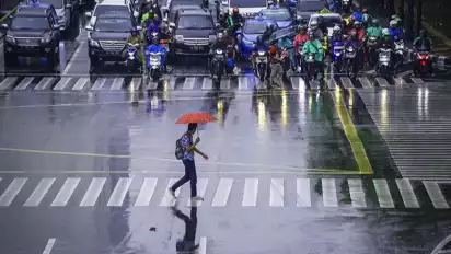 "Waspada potensi hujan yang dapat disertai kilat/petir dan angin kencang di sebagian wilayah Jakbar, Jaksel dan Jaktim pada menjelang siang dan sore hari," tulis BMKG.