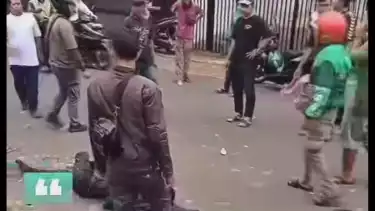 Tampak dalam tayangan video itu, satu orang terduga pelaku curanmor itu sedang dikerumuni oleh warga dan dia tergeletak di bawah sedang minta ampun.