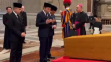 Jakarta, tvOnenews.com - Menteri HAM Natalius Pigai, Wakil Menteri Keuangan Thomas Djiwandono, dan Ignasius Djonan melayat Paus Fransiskus. Jokowi pun berdoa di depan peti mati Paus Fransiskus.