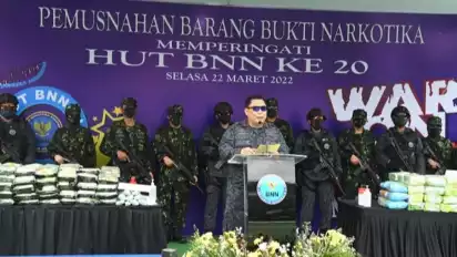 Bogor, Jawa Barat - Dalam rangka memperingati dua dasawarsa sebagai pengemban tugas dalam Pencegahan dan Pemberantasan, Penyalahgunaan dan Peredaran Gelap Narkotika (P4GN), Badan Narkotika Nasional Republik Indonesia (BNN RI) memusnahkan barang bukti narkotika berupa 339.971,82 gram (339,97 Kg) sabu dan 16.532 butir ekstasi.