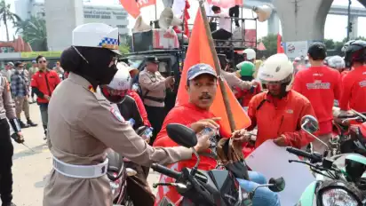 "Para Polwan dengan menyapa, senyum kepada para buruh, membagikan air mineral dan roti sebagai bentuk pengamanan yang humanis," kata Martuasah, Jakarta, Kamis (1/5/2025).