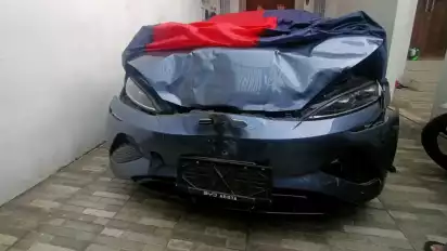 Sementara itu terlihat mobil yang diduga ditabrak berada di tengah jalan dalam keadaan rusak parah. Kemudian setelahnya mobil listrik BYD itu berhasil melarikan diri.