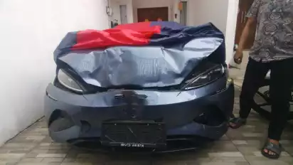 Kemudian tiba-tiba saja, mobil yang dikendarai CI ditabrak dari belakang oleh mobil BYD Seal.