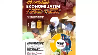 Balikpapan, tvOnenews.com - Provinsi Jawa Timur mencatatkan pertumbuhan impresif di triwulan I tahun 2025. Berdasarkan data BPS per 5 Mei 2025, pertumbuhan ekonomi Jatim tercatat menyentuh angka 5% secara y-o-y.