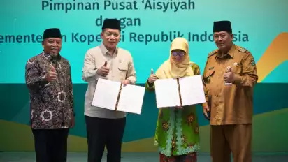 Jakarta, tvOnenews.com - Wakil Menteri Koperasi (Wamenkop) sekaligus Ketua Pelaksana Harian Satgas Percepatan Pembentukan Koperasi Desa Merah Putih, Ferry Juliantono melakukan penandatanganan MoU atau Nota Kesepahaman dengan Pimpinan Pusat (PP) ‘Aisyiyah terkait dengan Penguatan dan Pengembangan Koperasi serta menghadiri acara Milad PiPP ‘Aisyiyah ke 108 Tahun di Kulon Progo, D.I. Yogyakarta, Senin (19/05)