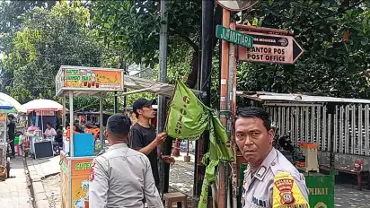 Polsek Kemayoran Tertibkan Bendera-bendera Ormas yang Terpasang Ilegal di Kelurahan Sumur Batu