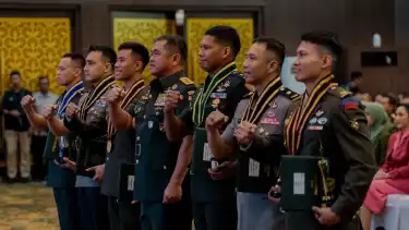 Jakarta, tvOnenews.com - Kepala Staf Angkatan Darat, Jenderal TNI Maruli Simanjuntak, memberikan apresiasi dan anugerah kepada para lulusan terbaik Pendidikan Reguler (Dikreg) angkatan ke-LXV Seskoad.