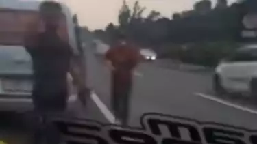 Dalam rekaman video yang didapat tim tvOnenews.com, terlihat dua pengemudi mobil menepikan kendaraannya di pinggir jalan.